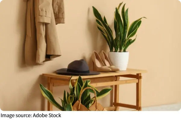 The snake plant's bold, upright shape makes it perfect for interior styling. Tall varieties suit entryways and living rooms, giving a sense of modern simplicity, while smaller types fit perfectly on desks or bookshelves. Their sculptural form complements minimalist, bohemian, or Scandinavian décor.