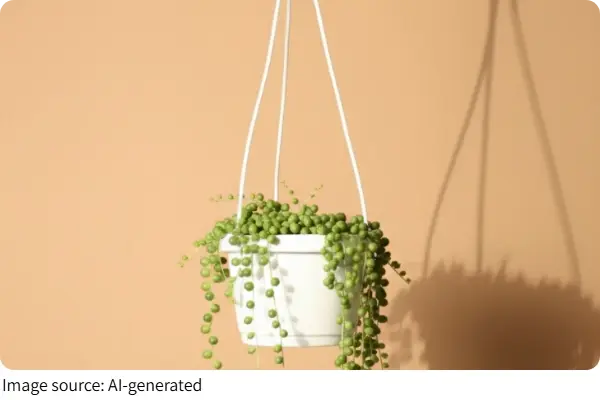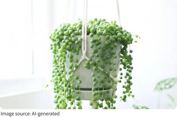 The Pearl String Plant is incredibly versatile. Hanging alone, it already looks beautiful, but we can mix it with other plants for a mini indoor garden. Combining it with different trailing plants or moss adds depth and texture. We can also use it for festive decor—tiny lights in the strands for holidays or small ornaments for celebrations create a lively, natural backdrop without artificial decorations.